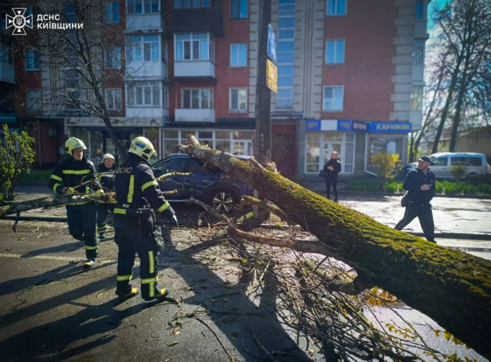 "Вчора у Білоцерківському районі рятувальники ліквідовували наслідки сильних поривів вітру, які призвели до падіння дерев у різних населених пунктах", – ДСНС Київщини.