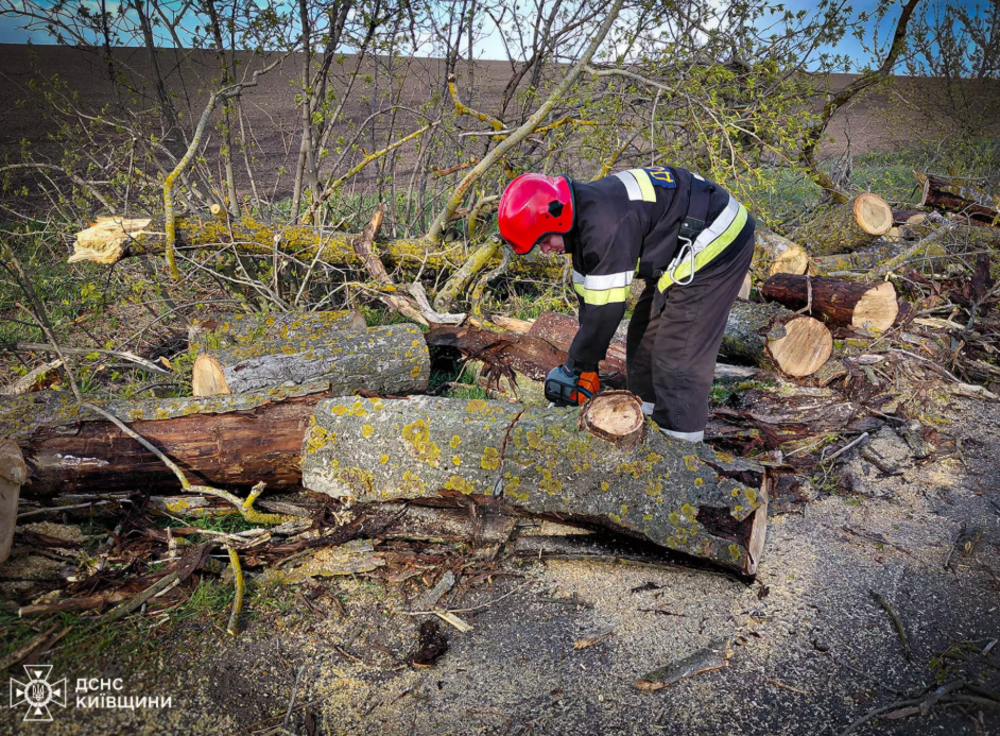 Унаслідок негоди на деяких дорогах Київщини було неможливо проїхати. Сильний вітер повалив дерева і створив чисельні обмеження для автівок. Щоб звільнити проїзд, на допомогу було викликано рятувальників: