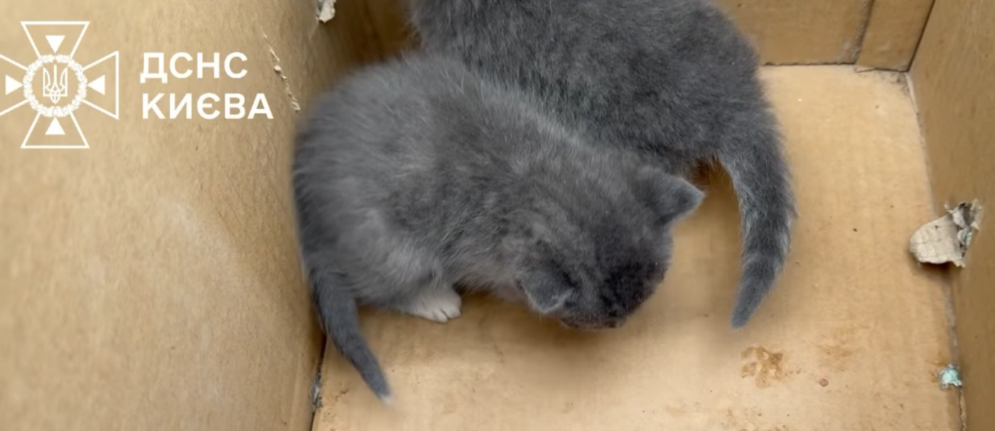 "Сьогодні під час ліквідації наслідків ворожого обстрілу вогнеборці знайшли трьох кошенят. Це дівчинка і два хлопчика", — повідомляє ДСНС Києва.