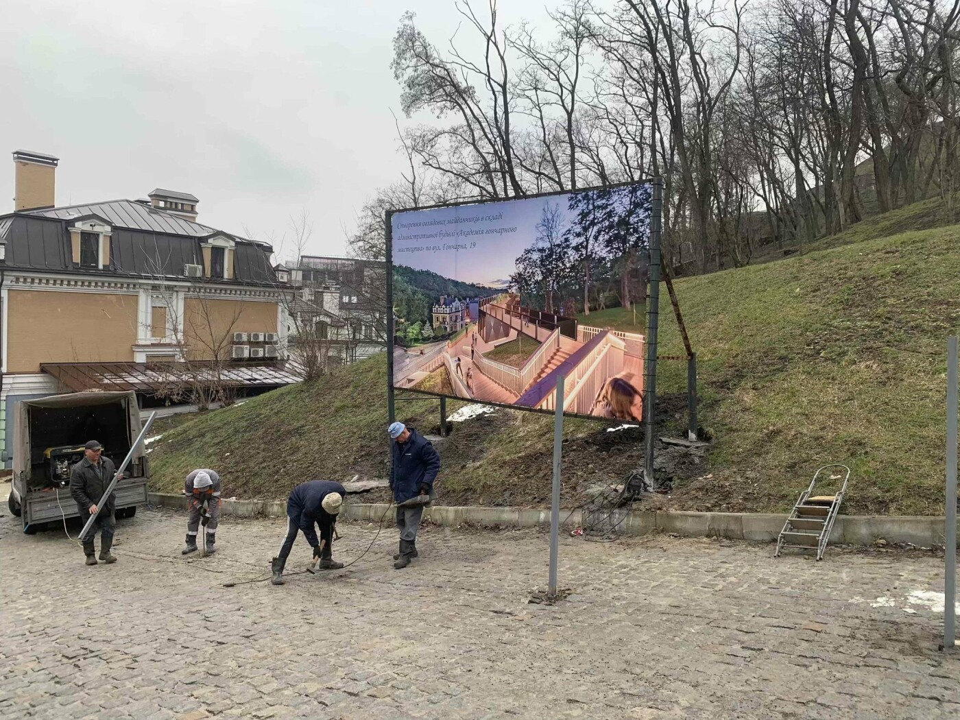 В Києві на вулиці Гончарній, 19, біля сходів на Старокиївську гору з Воздвиженки, почалися будівельні роботи.