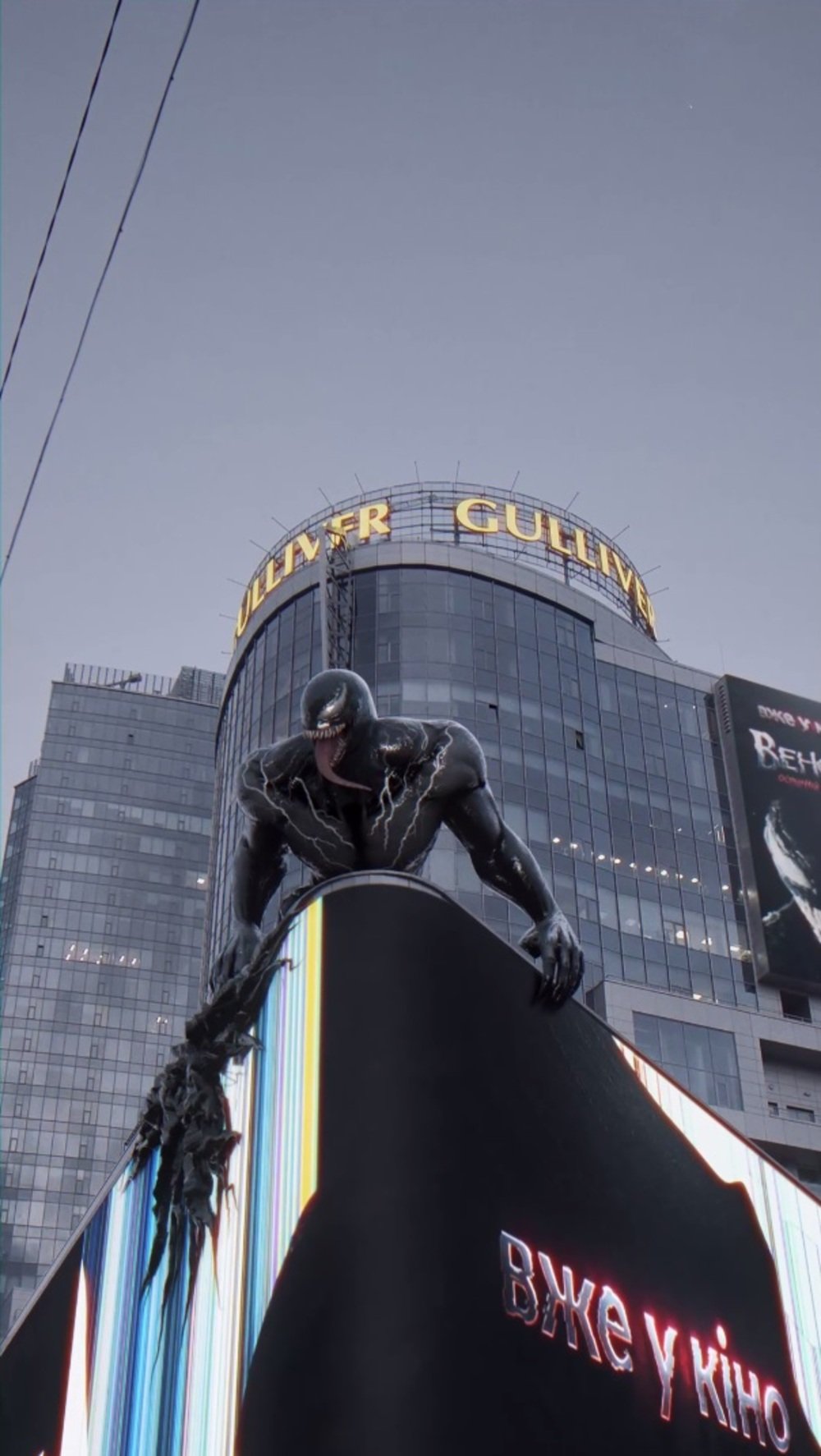 Ця колаборація переносить глядачів у динамічний світ Marvel, де Веном буквально «висить» над Києвом, обираючи ТРЦ Gulliver своєю ареною. Ефектне відео створене для шанувальників франшизи та всіх, хто цінує передові візуальні ефекти, і є відсилкою до подій нового фільму, що вже вийшов на великих екранах.
